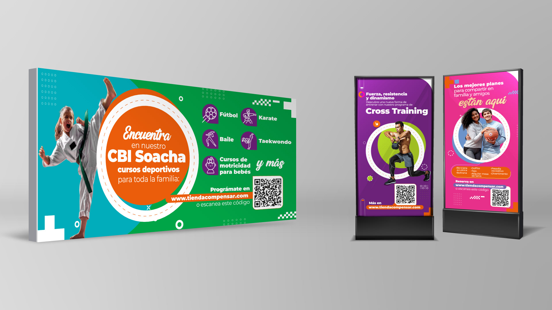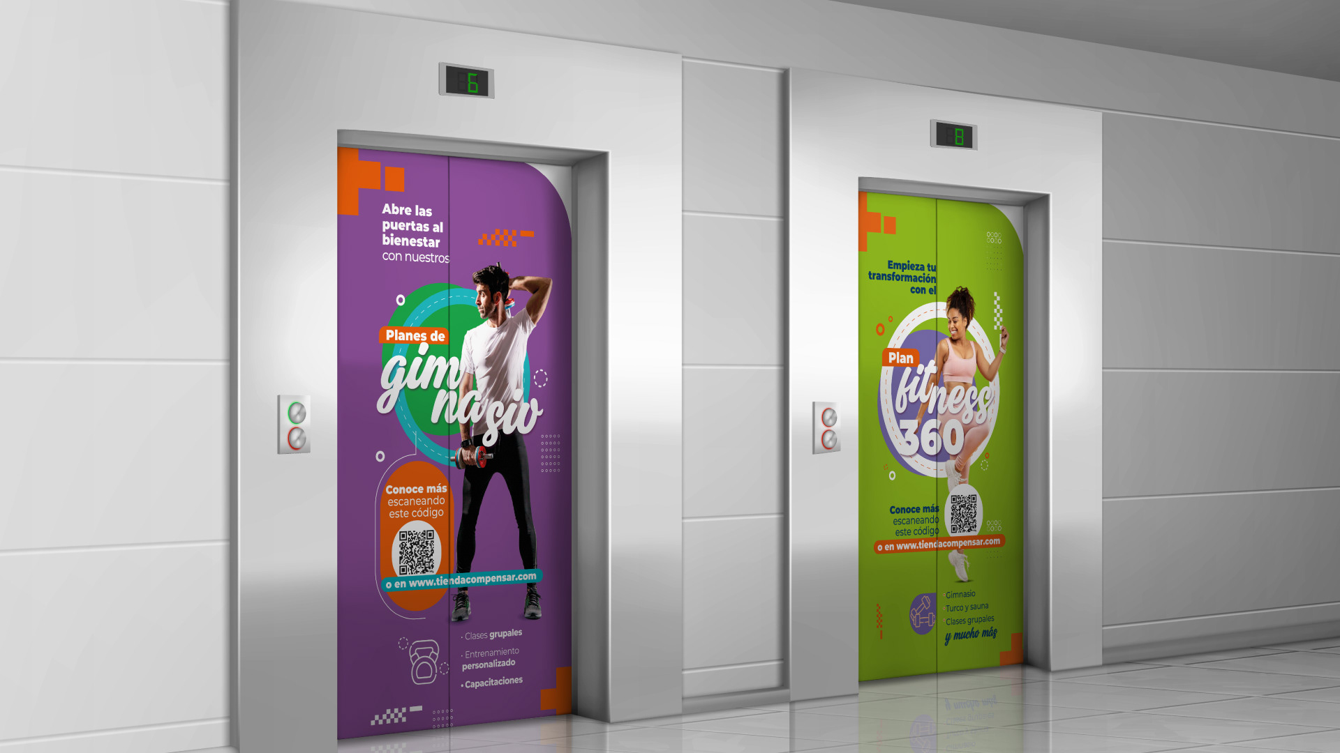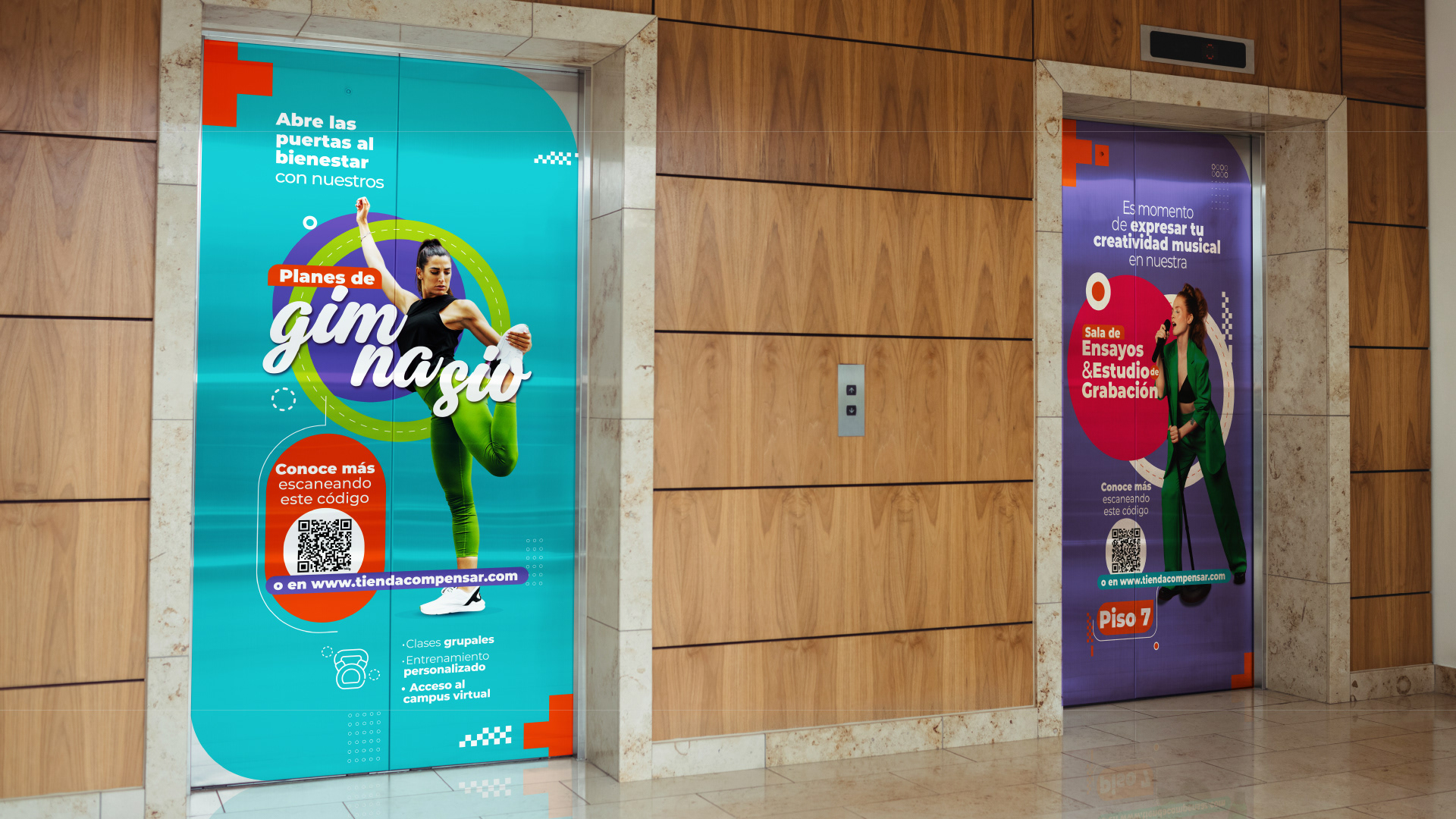 Compensar confió en nuestro equipo para desarrollar una estrategia de brandeo físico a través de piezas impresas aplicadas en diferentes zonas de sus sedes. El proyecto incluyó artes para ascensores, baños, áreas deportivas, pasillos, zonas comunes y espacios de espera, con mensajes motivacionales y recursos visuales alineados con la identidad institucional. Se diseñaron más de 50 piezas adaptadas a formatos como afiches, vallas y señalética, generando una experiencia visual coherente y funcional. Esta propuesta convierte cada espacio en una oportunidad de comunicación impresa, fortaleciendo el vínculo entre marca y usuario.