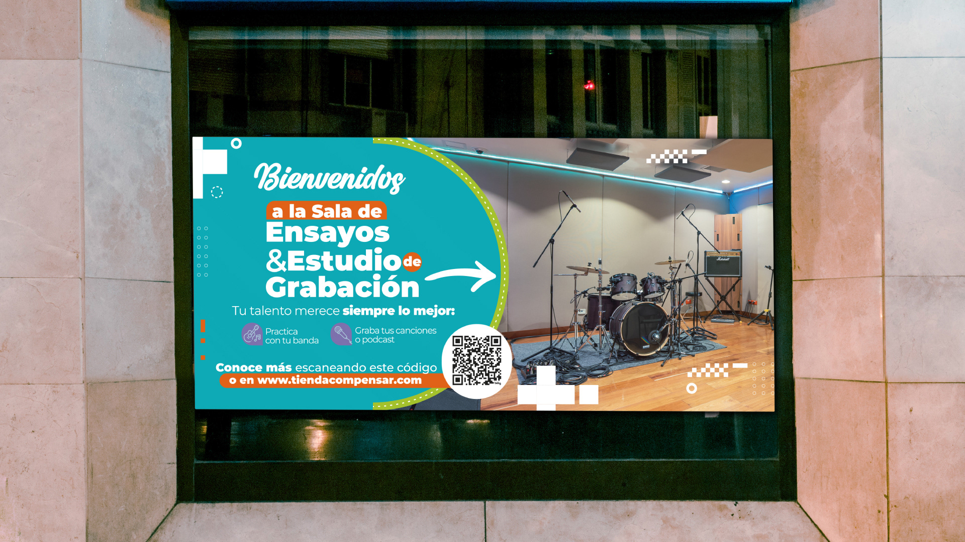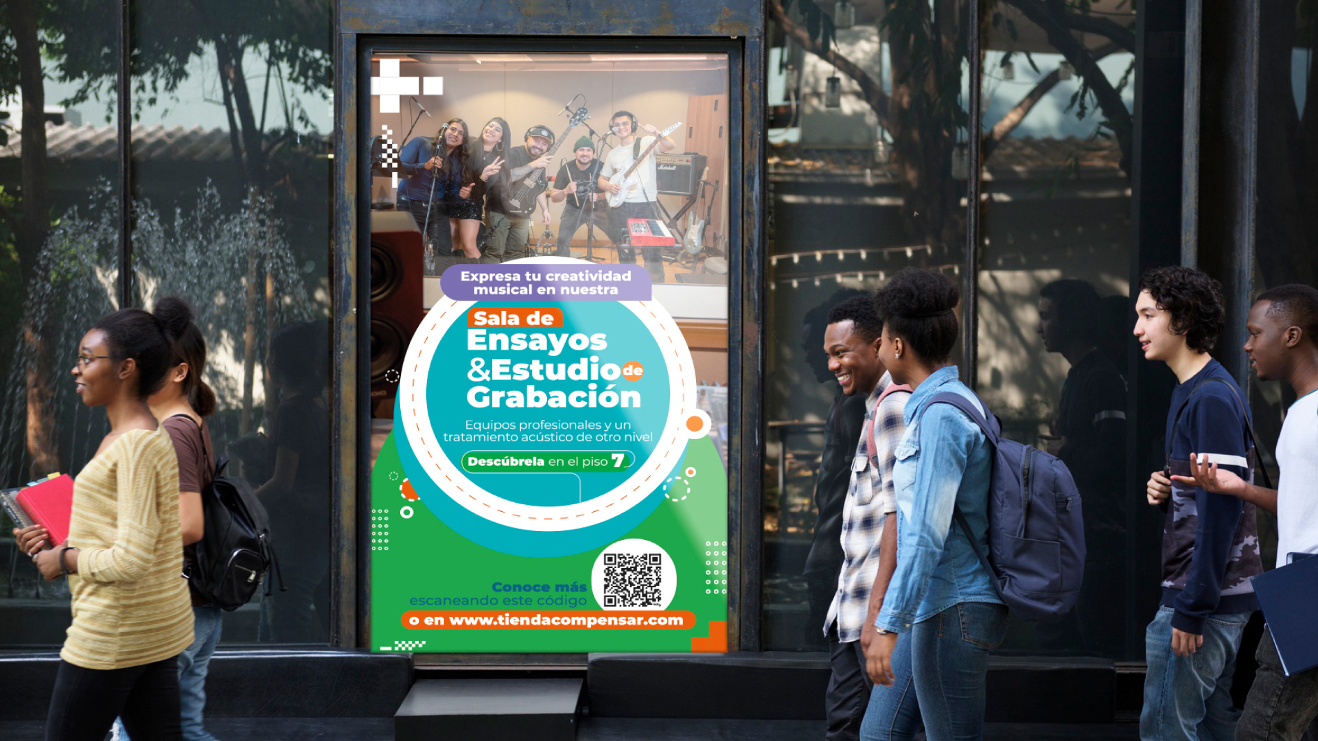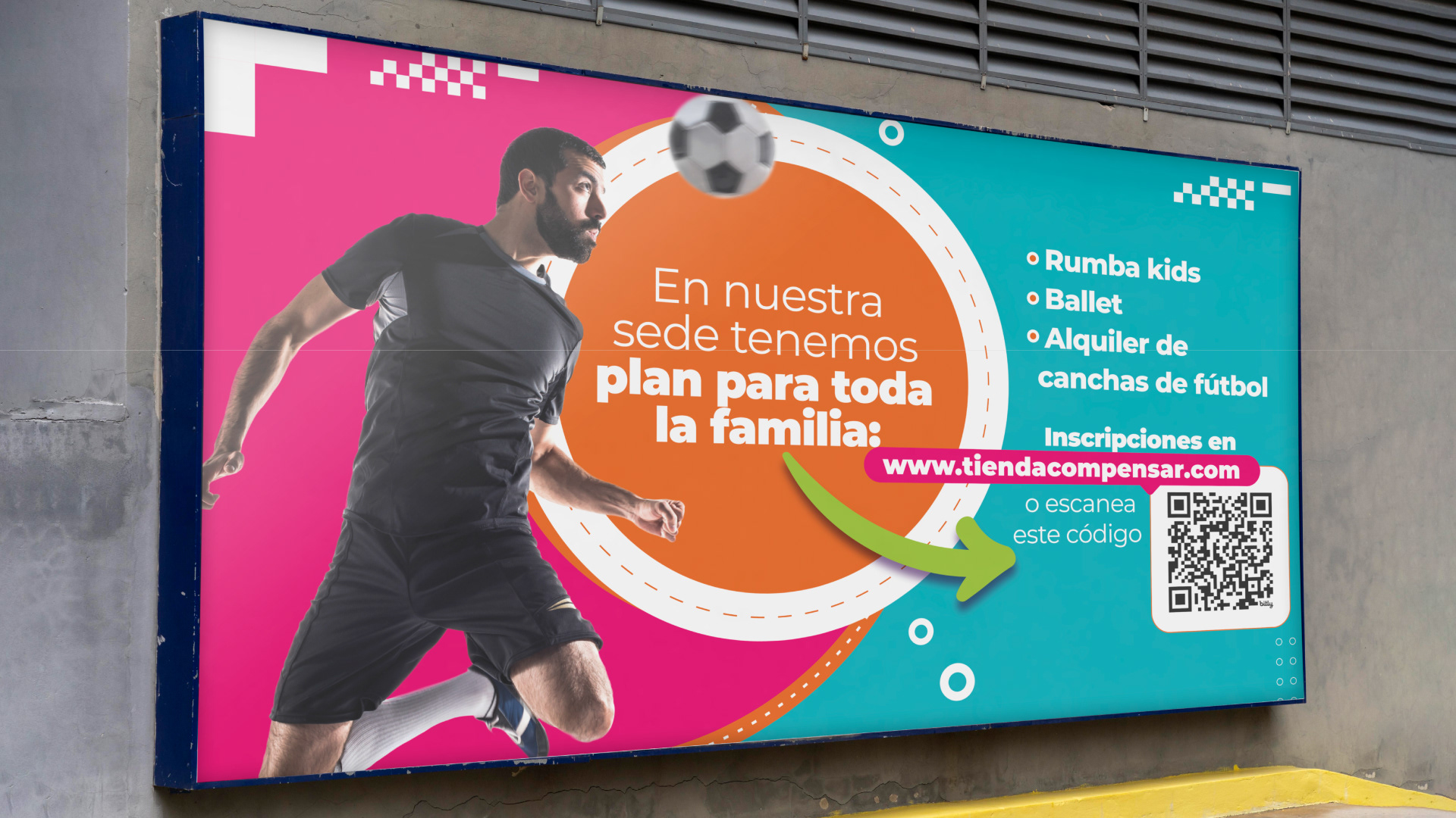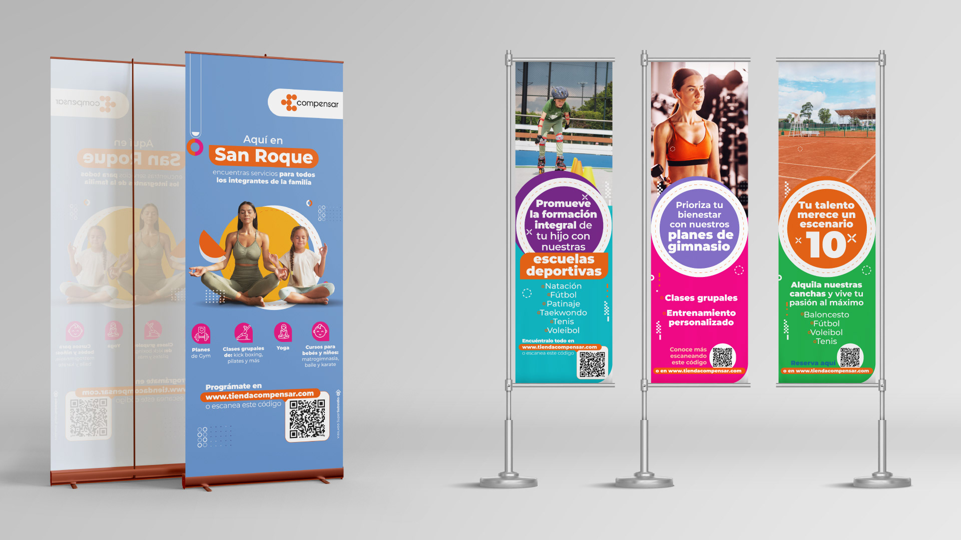 Compensar confió en nuestro equipo para desarrollar una estrategia de brandeo físico a través de piezas impresas aplicadas en diferentes zonas de sus sedes. El proyecto incluyó artes para ascensores, baños, áreas deportivas, pasillos, zonas comunes y espacios de espera, con mensajes motivacionales y recursos visuales alineados con la identidad institucional. Se diseñaron más de 50 piezas adaptadas a formatos como afiches, vallas y señalética, generando una experiencia visual coherente y funcional. Esta propuesta convierte cada espacio en una oportunidad de comunicación impresa, fortaleciendo el vínculo entre marca y usuario.