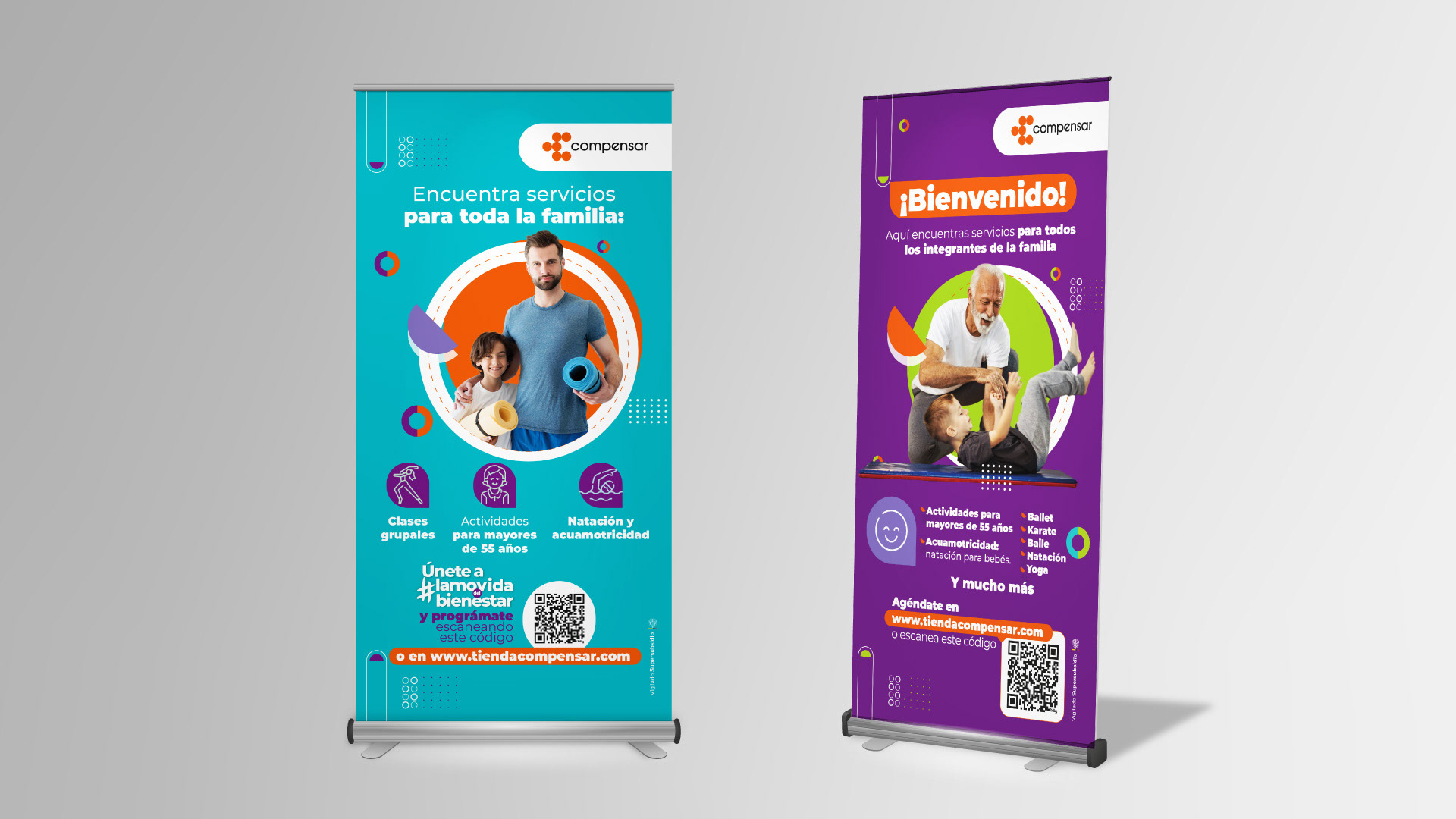 Compensar confió en nuestro equipo para desarrollar una estrategia de brandeo físico a través de piezas impresas aplicadas en diferentes zonas de sus sedes. El proyecto incluyó artes para ascensores, baños, áreas deportivas, pasillos, zonas comunes y espacios de espera, con mensajes motivacionales y recursos visuales alineados con la identidad institucional. Se diseñaron más de 50 piezas adaptadas a formatos como afiches, vallas y señalética, generando una experiencia visual coherente y funcional. Esta propuesta convierte cada espacio en una oportunidad de comunicación impresa, fortaleciendo el vínculo entre marca y usuario.