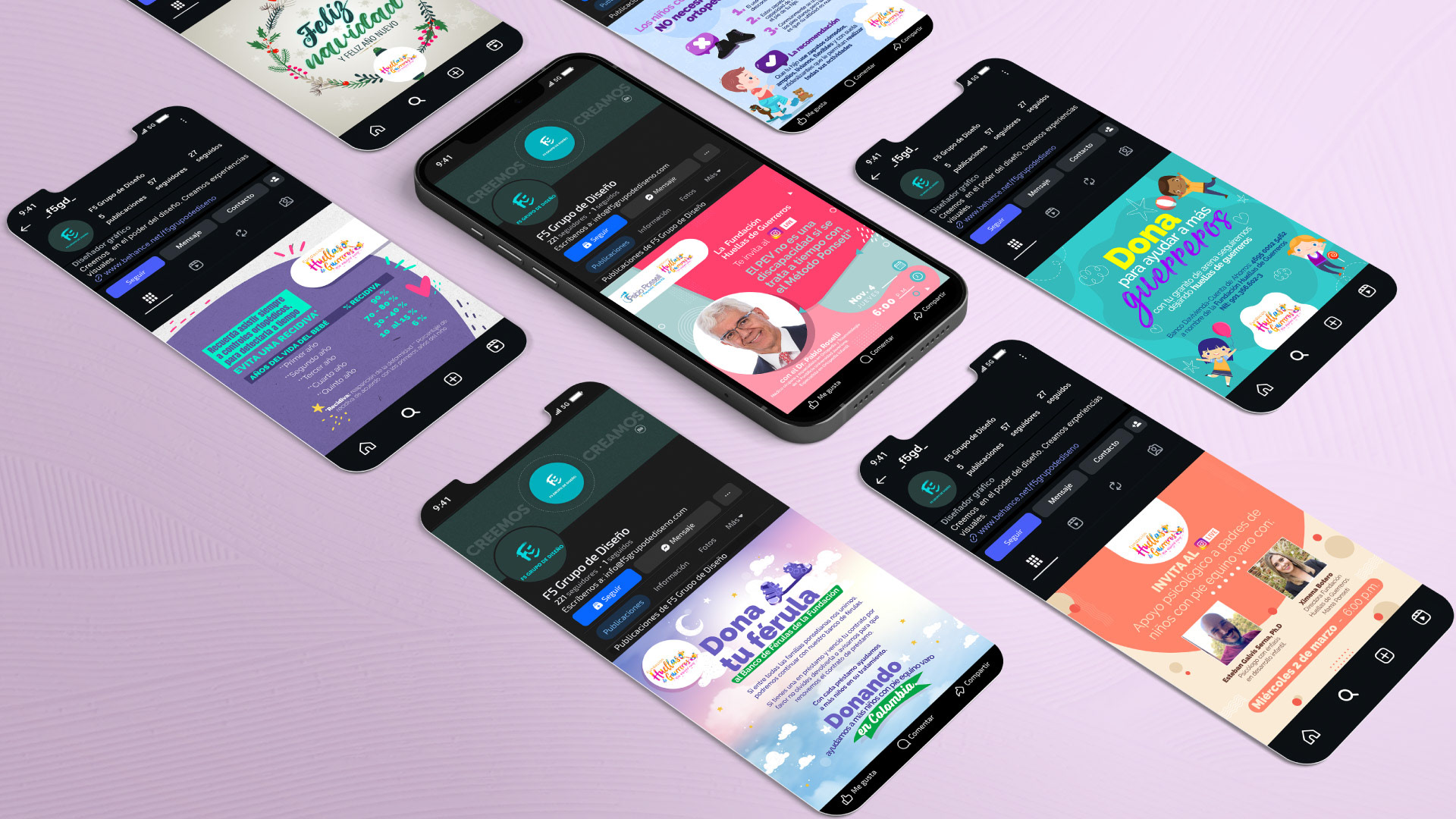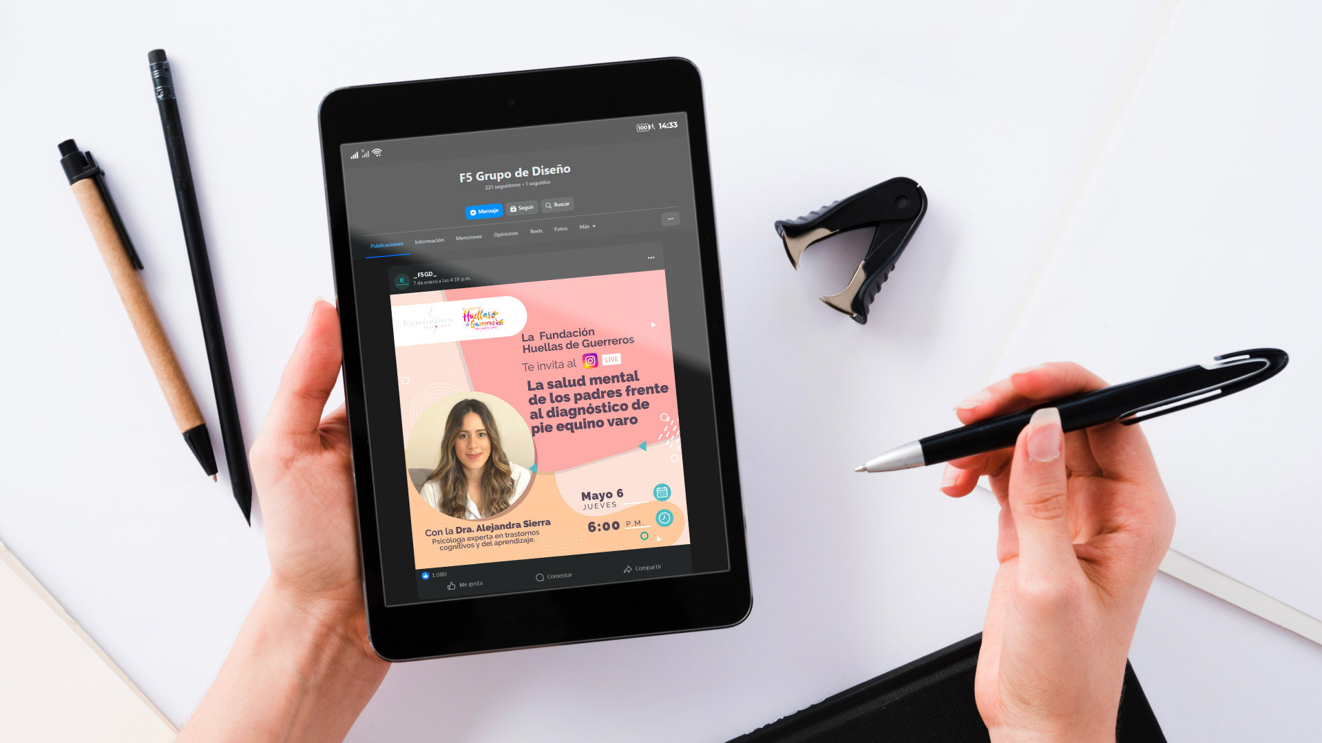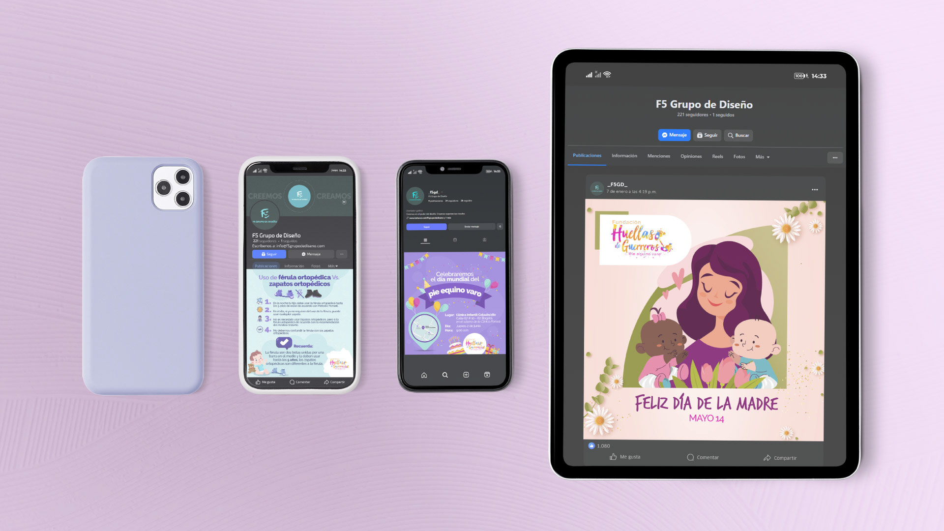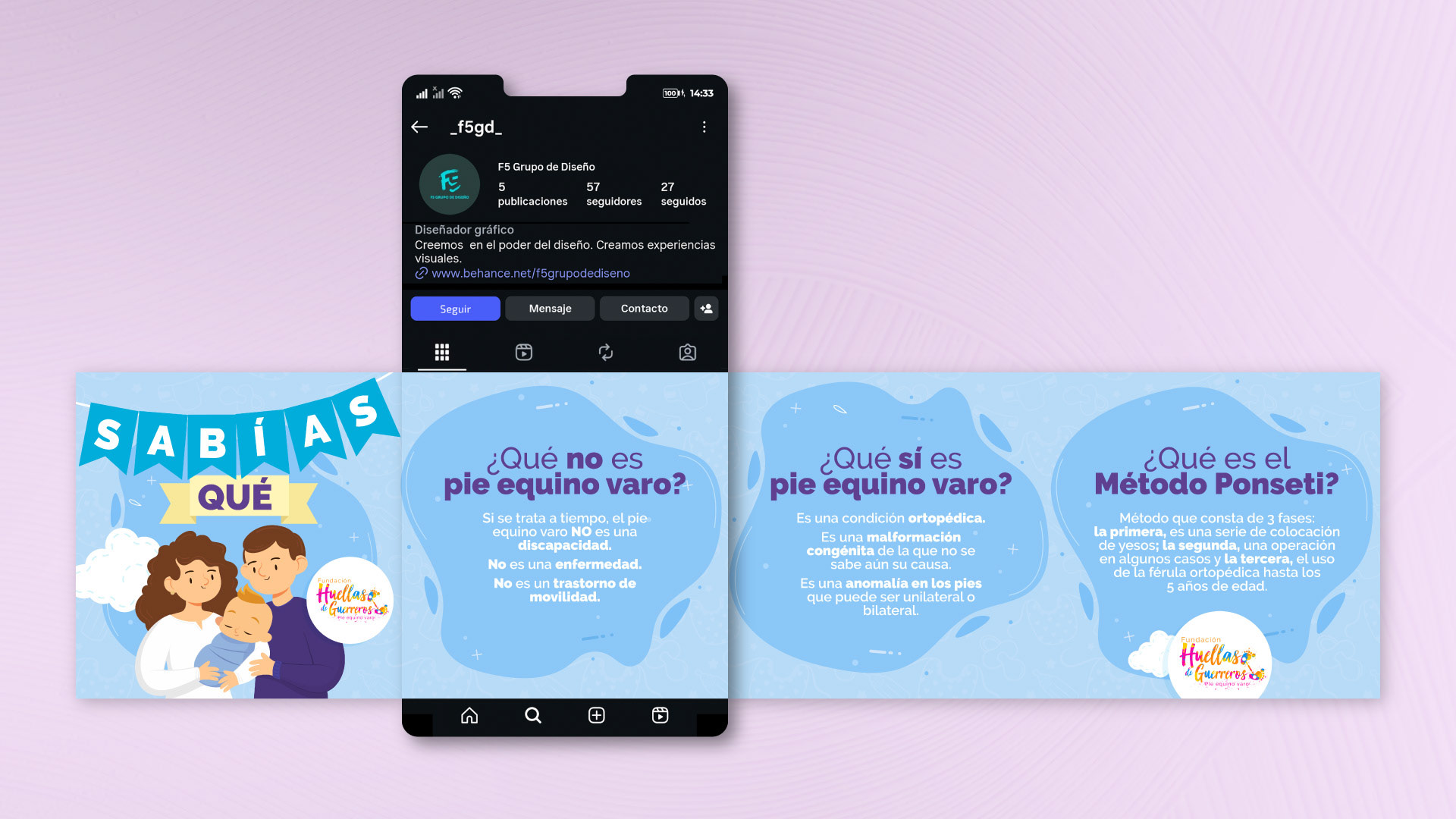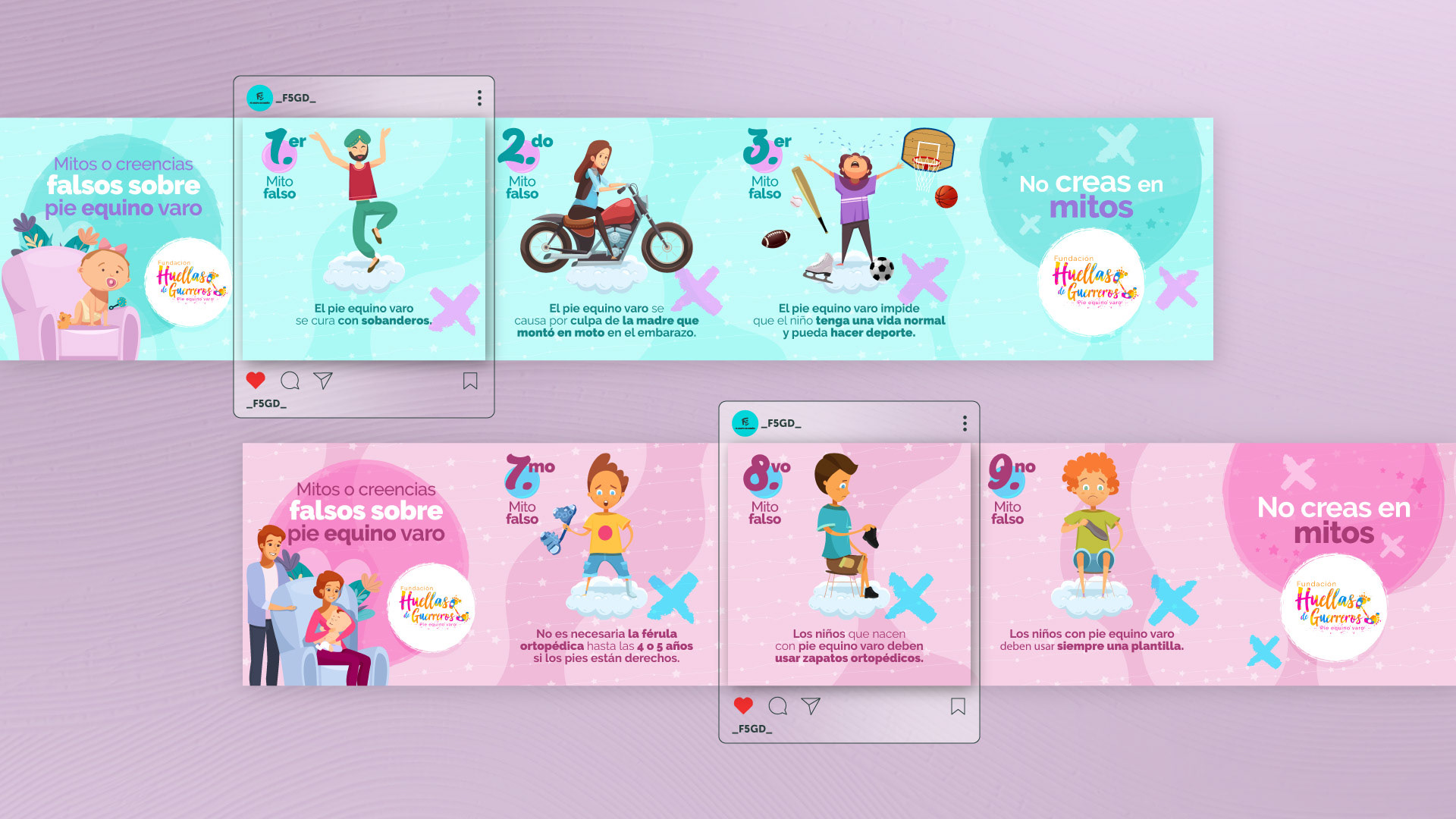 Para Huellas de Guerreros desarrollamos una línea gráfica pensada para transformar información especializada sobre el pie equino varo en contenido claro, amable y accesible para las familias. Creamos un sistema visual basado en colores pasteles y composiciones suaves, reforzando la cercanía y sensibilidad que caracterizan a la fundación.