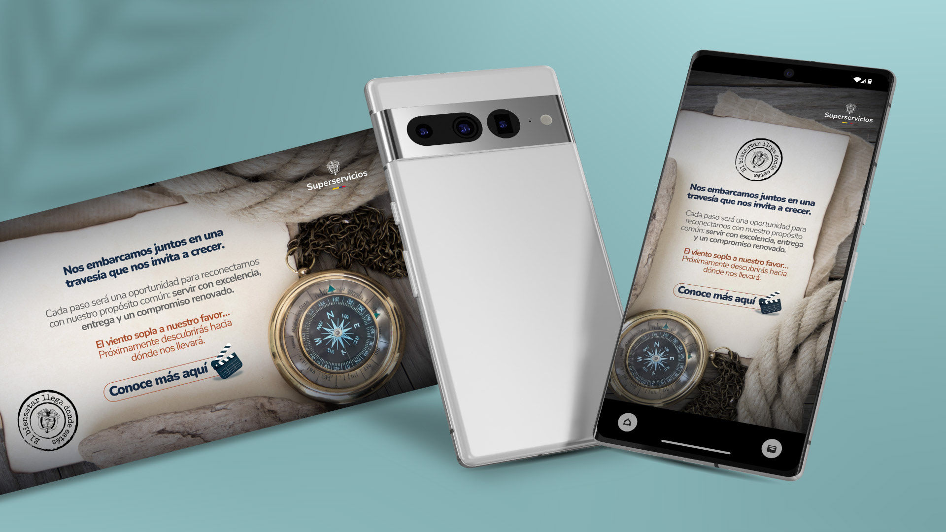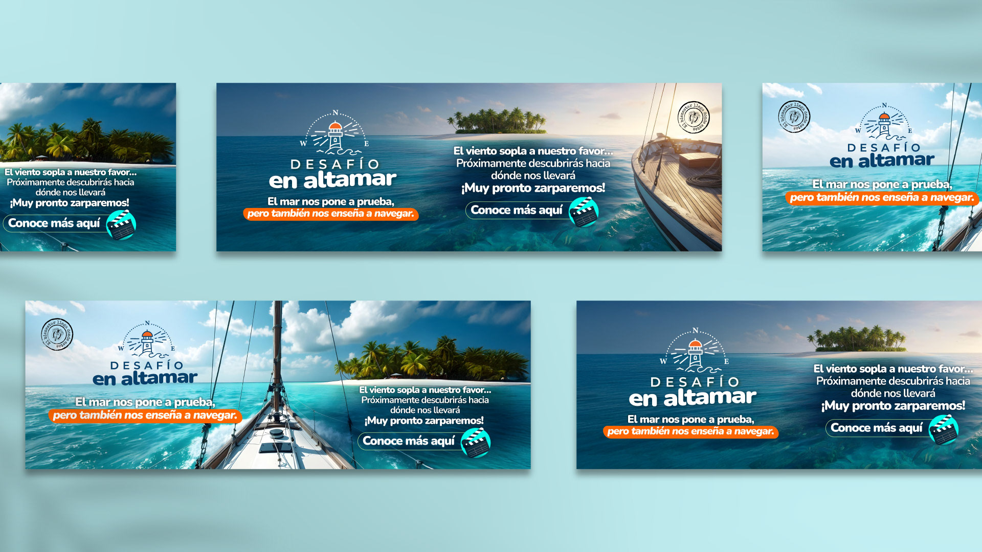 Cada pieza gráfica refuerza la idea de que todos somos parte de la misma tripulación: algunos toman el timón, otros descubren nuevas rutas, todos avanzan hacia un mismo destino. El resultado es una comunicación coherente, sensible y orientada a acompañar el cambio con claridad y propósito, donde el diseño se convierte en guía para navegar nuevos rumbos.