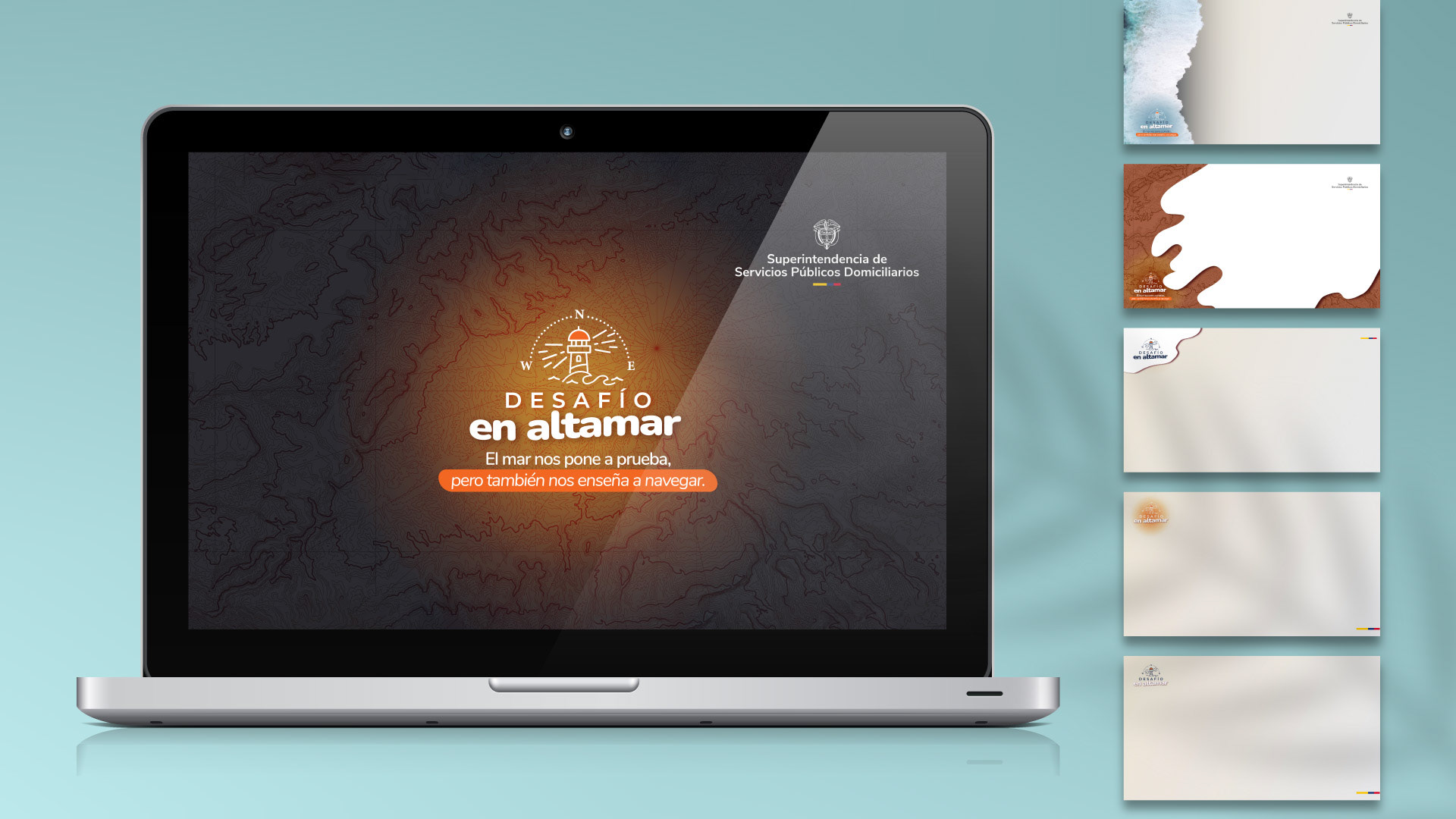 A partir del racional “Desafío en Altamar”, desarrollamos el concepto visual de una campaña institucional creada para acompañar un proceso de reconfiguración de equipos dentro de la Superintendencia. La metáfora del mar —como espacio de aprendizaje, adaptación y movimiento— guió la construcción de una estética náutica sobria, evocando navegación, mapas, brújulas y horizontes abiertos mediante imágenes generadas con inteligencia artificial.